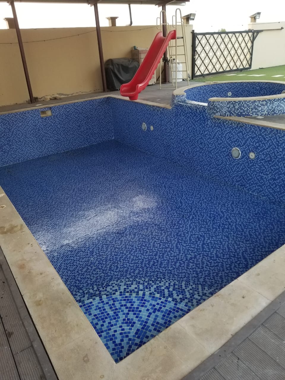 تفتخر شركة المزايا كلين بتنفيذ أحد مشاريعها المتميزة في تنظيف وصيانة المسابح بمدينة الرياض، والذي شمل تنظيفاً شاملاً لأرضيات وجدران المسابح، وفحص أنظمة الفلترة والمضخات، ومعالجة المياه للحفاظ على نقائها وسلامتها.